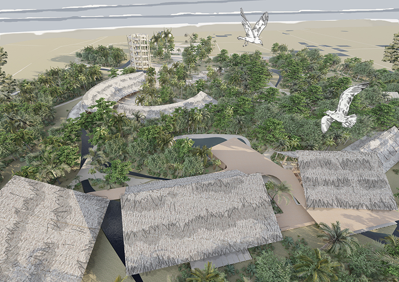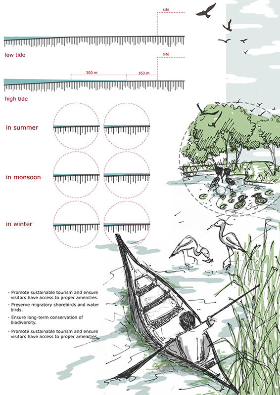Tourism Centre at Nijhum Dwip is a Thesis project submitted form Maad Wania Student of School of Architecture and Design, BRAC University, Dhaka, Bangladesh. The details of the project is described below.