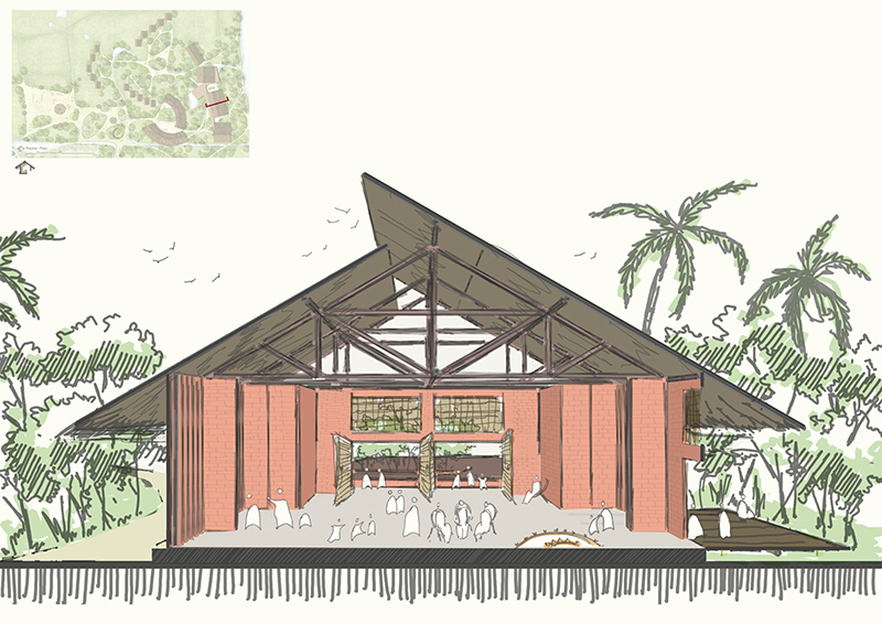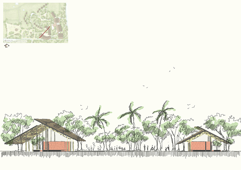 The idea of the design originated from a fundamental question: Are individuals arriving from the bustling city life of Dhaka, after a prolonged journey to Nijhum Dwip, seeking a return to urban life or an immersion in the unique essence of Nijhum Dwip? This led to the concept of the Nijhum Dwip tourism Centre as an eco-resort focusing on creating a natural ambiance and fostering a completely naturally ventilated space for visitors.