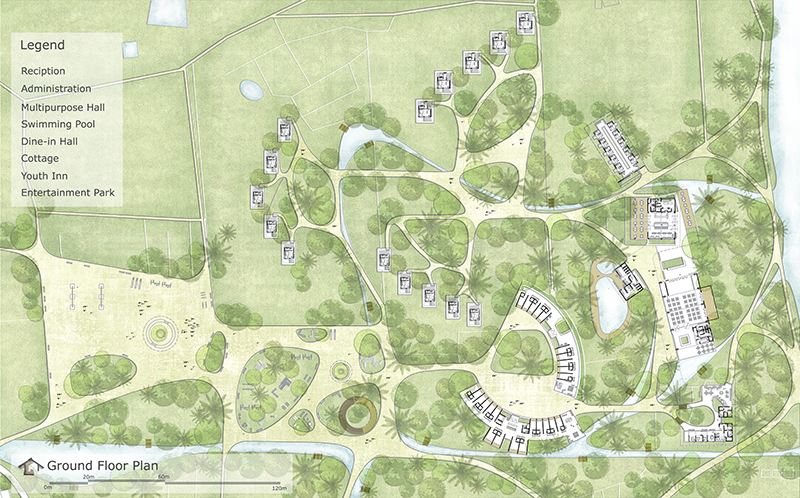 This report details the design concept, focusing on creating a sustainable and refreshing retreat. By fostering a harmonious relationship between architecture and the natural surroundings, the tourism center aims to provide a unique and immersive experience for visitors, ensuring a memorable stay that aligns with the captivating spirit of Nijhum Dwip.